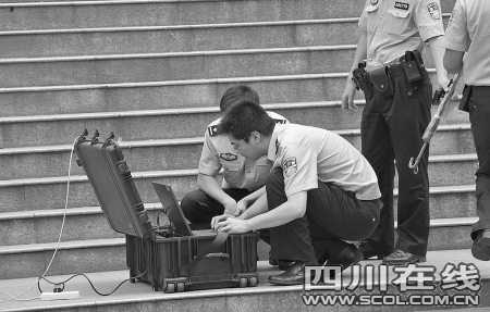 排爆仪器对可疑箱子进行探测