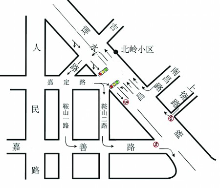本报 8月11日讯 为解决瑞昌路行车难、过路难的问题,四方交警大队在瑞昌路嘉定路路口设置信号灯,并将瑞昌路改为双向交通。取消单行后不少驾驶人在该处不知怎么走最便捷。为此,11日四方交警公布交通示意图(如图),方便驾驶人通行。