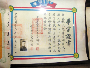 在另一份民国二十三年(1934年)由云南省立东陆大学(今云南大学的前身)颁发给“杨文彪”的毕业证书上,除了校名、科目等内容外,引人注意的是,证书上已同时附有学生本人照片,同时还专门注明了学生的籍贯“云南省大理县人”和年龄“现年二十二岁”。这与我们现在的毕业证书显然有所不同,但已非常规范,而且具有了一定的防假冒功能。