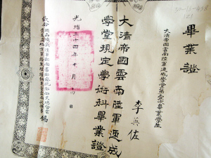 昆明现存最早的毕业证 记者 曲鸣飞 摄