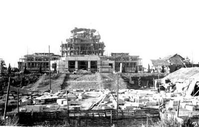 上世纪五十年代正在修建中的烈士公园烈士塔。(市城建档案馆供图)