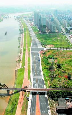 2001年以来,长沙先后建设了湘江风光带、浏阳河风光带、靳江河风光带、圭塘河风光带等沿江沿河风光带,不仅为市民亲水创造了很好的条件,也成为长沙城市绿景。图为浏阳河风光带一段。