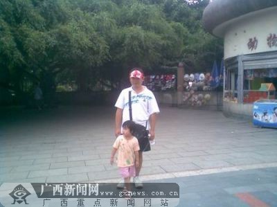 太热了,爸爸也带上了太阳能风扇帽。广西新闻网实习生 王菲菲摄。