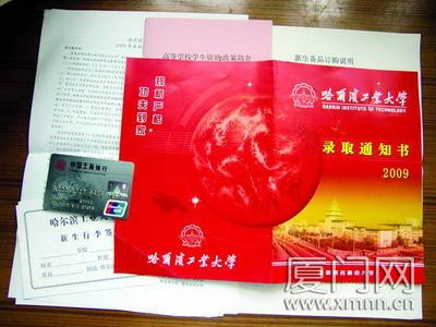 哈尔滨工业大学的录取通知书,看上去简单得有点“俗气”。整张通知书红艳艳的,对折的页面正中是一个火红的地球,封底有8个字——规格严格,功夫到家。阮厦城同学对这8个字印象最深,他猜测这可能就是校训,“因为是和学校风格很相配”。