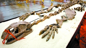 今年44岁,从18岁开始挖恐龙,已经和恐龙打了20多年交道。他将于17日来京,同其他专家将这3具亲手发掘的恐龙化石组装好,展示给首都观众。他介绍,3具恐龙都是经他亲手挖掘出土的,如今移居中国科技馆,就像父亲嫁女儿一样,自然有些舍不得。昨日,王涛向记者讲述了3具恐龙的出土故事。