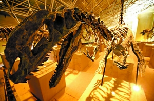 生长于中生代中侏罗纪,距今1.58亿年,长27米,高6.5米,国内最大的恐龙化石。