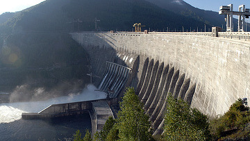 萨扬---舒申斯克水电站位于俄罗斯西伯利亚叶尼塞河上游,总装机容量640万kW,保证出力212万kW,平均年发电量235亿k,是世界同类型电站中最大水电站之一。