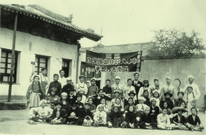 “雄鸡雄鸡高呀么高声叫,叫得太阳红又红……”许多人还记得秧歌剧《兄妹开荒》中的这段经典唱词,或许也曾在几十年前跳过舞,而年逾八旬的白居智老人,曾在新中国成立的这一天,组织孩子们跳起这段舞,迎接新中国的诞生。1949年10月1日,毛主席在天安门城楼宣布新中国成立,举国欢庆。远在兰州山字石小学以教员身份作为掩护的地下党员白居智,与老师们号召同学们重返校园,参加国庆活动。学生们在学校表演了当时脍炙人口的秧歌剧《兄妹开荒》,白居智老人用手中的相机记录了这一幕。而另一张照片上,表演完节目的学生和老师们一起合影,师生们穿着代表工人、农民、知识分子等社会各阶层人士的服装,一位老师手举镰刀,一位手举斧头,寓意党取得了伟大的胜利。