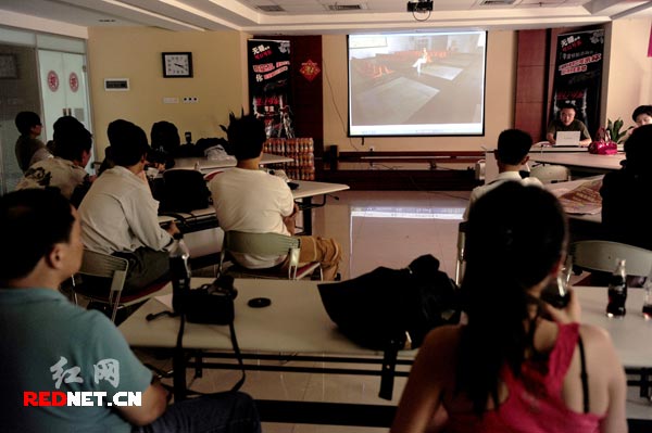 (7月“零度快拍”现场交流会主题之一,潇湘晨报摄影记者赵尚渝与摄友们分享战地采访的拍照经历及讲解拍摄图片故事的技巧心得。图/记者 陈勇)