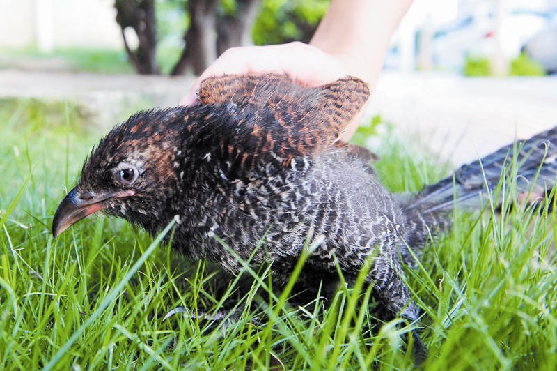 随着“观众”慢慢增多,大蛇最终松口,迅速消失在远处的草丛里。林业人员很快赶到,发现这是一只褐翅鸦鹃,体长在30公分左右,已经奄奄一息。林业人员表示,褐翅鸦鹃喜欢捕食一些小蛇,可能是对刚才那条蛇估计不足,不但没吃到蛇,反被蛇咬成重伤。