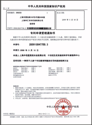 “金牌宝贝”儿童个性化教育与健康成长基因检测于3月18日申报并受理了专利申请,配套计算机分析软件与数据库系统也同时获得了国家级的著作权专利技术,出具的报告书由国家版权局确认保护,这标志着深圳市中优亿生科技有限公司完全拥有了采用DNA微测序技术的儿童天赋基因检测产品的推广运用与全权运营“金牌宝贝”儿童个性化教育及健康成长基因检测的资格与实力。