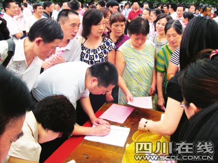 地震极重灾区彭州人们捐款感恩