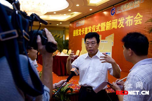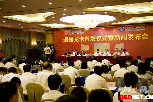 红网长沙8月19日讯(通讯员彭翔、李国辉)8月18日,“通程龙卡首发仪式暨新闻发布会”在长沙通程国际大酒店隆重举行,建行湖南省分行行长龚蜀雄、长沙通程集团董事长周兆达出席了首发仪式并致辞。湖南建行副行长陈二尧在会上对“通程龙卡”作了简要介绍。湖南省商务厅副厅长易昌伦,湖南省国有资产监督管理委员副主任杨晓瑜,长沙市政府副秘书长余冬阳,中国银联湖南分公司总经理唐献良,以及长沙通程实业集团有限公司的有关领导和首批“通程龙卡”持卡人代表应邀出席了仪式。经办行——建行长沙河西支行派出精兵强将为发布会的召开提供了坚实的保障和良好的服务。发布会后,龚蜀雄行长和通程集团常务副总经理周拥泽分别接受了湖南日报、潇湘晨报、红网、湖南经视、交通频道、长沙晚报、新闻频道等媒体的采访。
