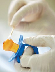 科研人员擦拭奶嘴获取婴儿的DNA样本(资料照片)