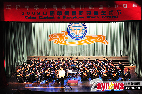 山西新闻网8月19日讯(记者 王晓艳)台上,悠扬的萨克斯、豪放的单簧管表演,让观众仿佛穿梭徜徉于繁华都市和寂静山村之间。台下,座无虚席,近千名观众静静聆听单簧管、萨克斯演奏出的美妙旋律。今天上午,2009中国单簧管萨克斯艺术节在省城南宫隆重举行,百人单簧管合奏的《山西风情》拉开了本次艺术节的帷幕。