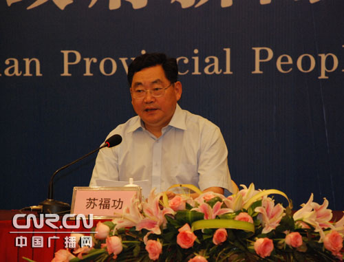组委会副主任、河南省旅游局局长苏福功致发布辞并回答记者提问