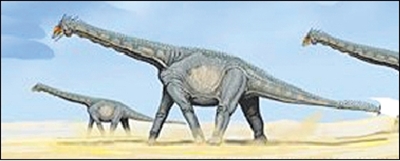 河南宝天曼龙 它属于一新的中型巨龙型类恐龙。主要以荐前椎蜂窝状构造发育、背椎体具有高度发育隔板系统为特征,在巨龙型类恐龙的演化中具有重要意义。复原后其体长15米左右。