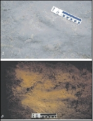 徐氏张北足迹 它为三趾型,为典型的兽脚类恐龙足印。徐氏张北足印化石的发现,使张北足印化石的分布范围扩展到河南西部义马市,说明了这种大型兽脚类恐龙生活在植被茂盛、温暖潮湿的气候环境中,为将来在该地区发现大型兽脚类恐龙骨骼化石及植食性恐龙化石的可能性提供了确凿依据。它是我省首次在侏罗纪地层中发现恐龙化石,说明早在一亿七千万年以前,河南就有恐龙出没。
