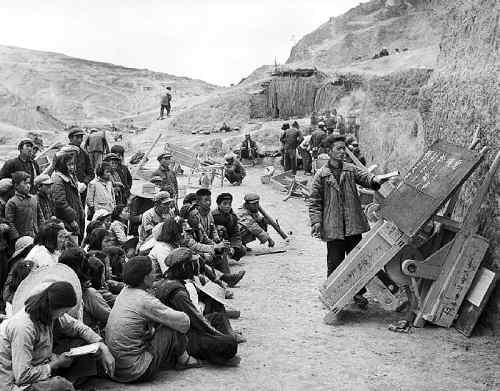 据新华社电1949年,新中国成立时我国约有人口5.5亿,那时的文盲率高达80%。一场轰轰烈烈的扫除文盲运动便在全国范围内展开。扫盲班遍布工厂、农村、部队、街道。图为1958年,云南玉溪县凤凰水库工地上的民工利用休息时间识字。