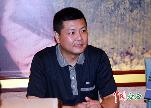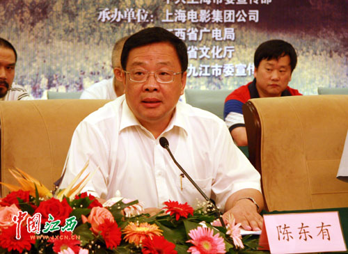 上海电影集团公司总裁任仲伦出席新闻发布会并讲话。(江西网记者 邱辉强 摄)