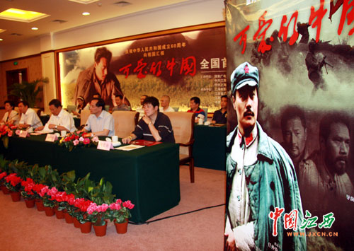 8月20日,《可爱的中国》全国首映新闻发布会在南昌举行。该片入围庆祝新中国60周年国产重点推荐影片,9月6日开始全国上映。(江西网记者 邱辉强 摄)