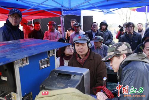 导演胡雪杨在监视拍摄进程。江西网资料图片。((陈芦根 摄)