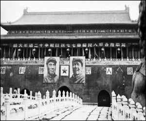毛泽东首次登天安门城楼:悬挂两人巨幅画像