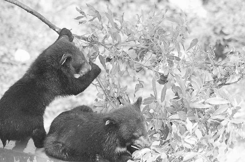 记者在熊池里看到,一群小黑熊在那里玩耍,像一群无忧无虑的孩子,一刻也不闲着。有的爬树折树枝、有的洗澡摔跤、有的站立起来像小孩一样一扭一扭地走路,还仰着头左顾右盼,显得有些笨拙、又憨态可掬,一直到玩累了也不肯罢休。记者还看到一只小熊将身体“卡”在树枝上,懒洋洋地睡大觉,还有两只小熊“合作”扳树枝,一个用力往地下压,一个在树叶间寻找遗漏的龙眼。