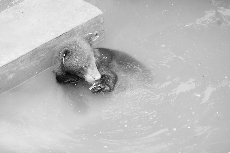 据管理员介绍,这些黑熊都是缅甸种,比较适应高温天气,这在选种时已经考虑这一点,所以他们不养北方黑熊。再说闽南天气还不算太热,有点热时,聪明的黑熊们也各想各招,要么到树荫下,要么到水池里甚至爬树祛暑纳凉。但池水一定要干净,一天换两遍。如果不是老熊或生病,熊舍里一般不加冰降温,但饮水和洗澡水要保证。养熊场面积大通风好,还种许多龙眼树,这一点一般动物园做不到。
