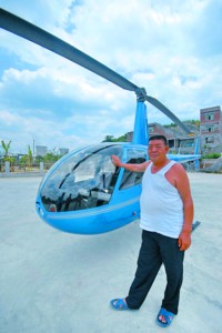 近段时间以来,贵州省金沙县靠卖菜和承包煤矿发家的农民企业家陈明刚,花了近600万元的人民币从美国进口一架小型直升飞机,此事在金沙县无人不晓。8月11日,飞机刚运到金沙县,陈明刚在其停机场旁开办了酒席,一摆就是好几天,先后有2万多名来自各地的乡亲前来观看飞机并免费在其开设的酒席上用餐喝酒。陈明刚说农民能买得起飞机,这本身就是一件大喜事。