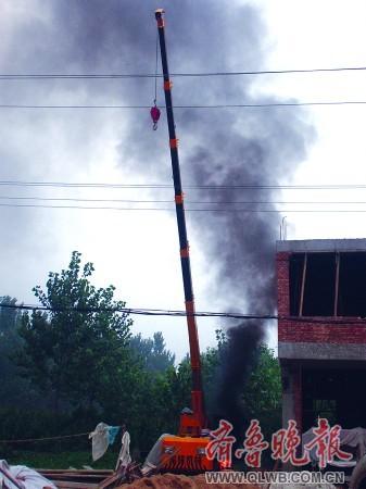 8月25日,在巨野县龙堌镇一临街在建二层门面房施工现场,一辆正准备作业的吊车吊臂碰上高压线,瞬间吊车两后轮剧烈燃烧,驾驶员跳车逃生。消防官兵及时将火扑灭,未造成人员伤亡。据了解,事发路段线路为1万伏高压,事故造成短时间断电。