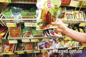 在重百等超市内,四川产的各种泡菜占据了泡菜货架的大部分地盘。 记者 毕克勤 摄