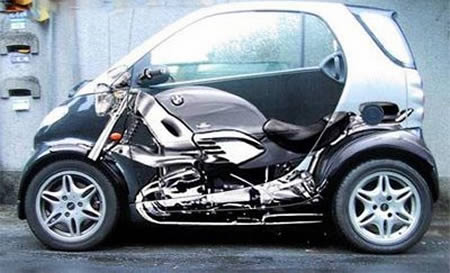 可以假乱真的彩绘。乍一看,还以为是摩托车呢,实际是一款迷你小型车。车主在爱车上描绘了一款经典的哈雷摩托。