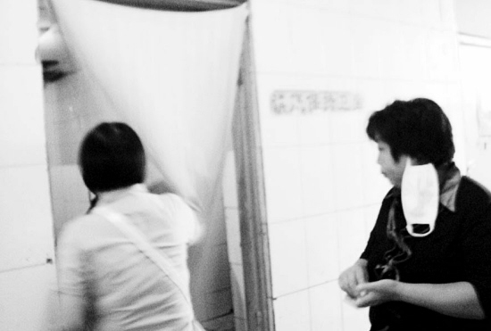不过,在绿衣妇女收费的过程中,记者发现两个问题。其中一个是上厕所看人收费。衣服后面带商标的女孩可以随意进出,且不限时蹲坑,憋得其他交费的人“摇头晃脑”地站排等待。可收费人员对此没有任何反应,而且还很体谅地说:“那是这里卖东西的服务员,都认识,再说她们一天站着挺累,只能借上厕所的机会偷点儿懒。”