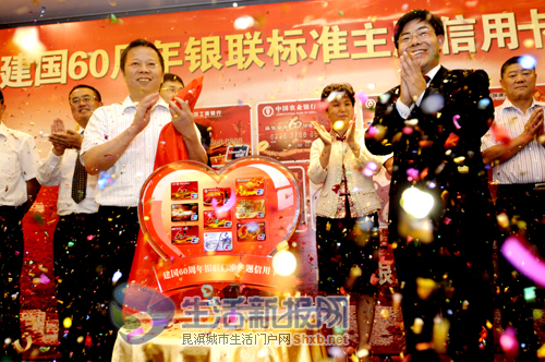 人民银行昆明中心支行及中国银联领导为“建国60周年银联标准主题信用卡”揭卡