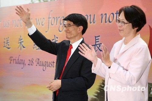 八月二十八日,香港科技大学师生集会欢送卸任校长朱经武夫妇离港赴美继续科研事业。中新社发郑祚声 摄