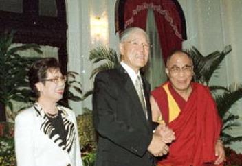 李登辉(中)于1997年3月27日在台北宾馆会见达赖喇嘛(右)。