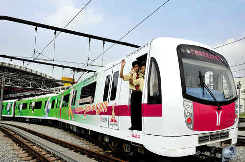 "亚运吉祥号"列车昨日在四号线首发。