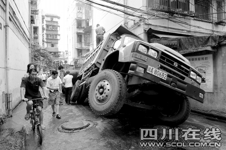“这条路修复不到一周,咋就被汽车压塌了?”家住罗家碾街37号的居民李先生说,由于这条街道的污水管网堵塞,去年年底,沿街数千户居民自筹资金,委托府南街道办城管科雇请施工单位,两次将这条街“开膛破肚”,疏通污水管网。前不久,这条街的污水管网再次堵塞,居民们又一次委托城管科雇施工单位开挖疏通。一周前,这条街路面才修复通行。昨日,施工人员准备为街面完成最后一道工序:铺沥青混凝土,孰料运载沥青混凝土进场的东风车却引发了这起事故。