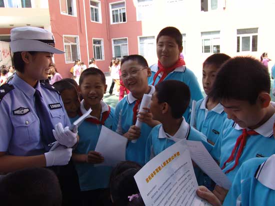 9月1日,开学第一天,沈阳市交警来到各属地的学校,向学生上了安全出行的第一课,并通过“小手拉大手”的方式把致机动车驾驶员朋友公开信和珍爱生命拒绝酒后驾驶的提示卡转送给父母。