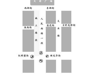 绕行方案1、原需经西御街—人民南路—红照壁街的车辆,可沿西御街—东御街—大业路—新光华街—红照壁街通行;