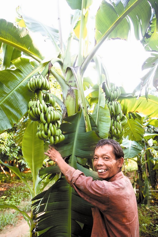 韩文金对于这株奇特的香蕉树异常爱惜,他时不时要到树旁转悠一下。村民小韩则告诉记者一件趣事,村里一位沈姓老人,茶余饭后跟人家闲聊,听人讲有一株香蕉树长着两串香蕉,他就是不信,还跟人家打赌,结果跑去一看,傻眼了。