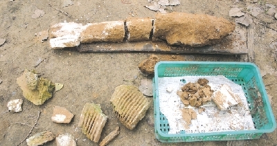 本报讯昨日,新密一村民在田间取土时,意外挖出一根古象牙化石,正在新密考古发掘的北京大学一教授初步鉴定,这些象牙化石距今10万年以上(上图)。