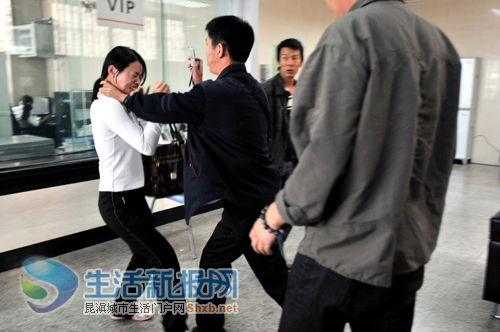 12点50分,年轻女子和中年男人走出停车场,走进银行。银行方将他们带到贵宾办理柜台。“不许动!”郭队长和三名执法队员冲上前,将女子戴上手拷,中年男子也被当场抓获。同一时间,在外等候的黑衣男子被随后赶到的几位执法人员抓获。