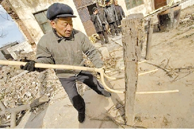 制作桑杈,须用枣木桩调整杈齿(资料图片)
