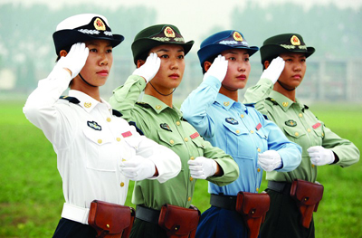 9月3日,位于北京空军某机场的国庆60周年阅兵方队训练场的女兵 新华社发