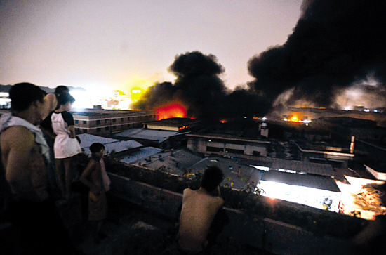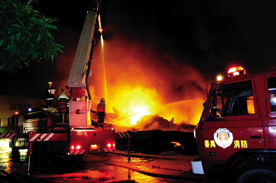 本报讯 记者魏新颖、江彬、吴彤,通讯员蔡益华报道:倒闭了的鞋厂,竟会燃起大火!昨晚8时29分,番禺区大石街大维村利昌鞋厂发生火警,3000平方米的仓库烧通顶。大火发生后,番禺区公安、安监、环保等多个部门到场,消防部门出动200多名消防员、25台消防车通宵救火。大火在今天凌晨2时许才得以控制,至记者早上9时截稿时止,消防部门仍在现场进行残火清理工作,暂无人员伤亡报告,起火原因有待进一步调查。