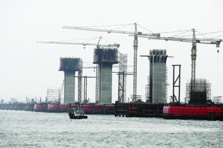 轮渡边在建的跨海大桥