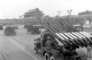 1959年 受阅部队由11018人组成了15个徒步方队、14个车辆方队和6个空中梯队。这次阅兵取消了骑兵、三轮摩托车和100毫米以下的地炮、高炮方队。受阅武器装备基本实现了国产化。其中,7个炮兵方队的火炮中有6种为国产。歼-5飞机,59式中型坦克、NC—2重型坦克,CY—100和NCY—152式自行火炮也都是国产的。