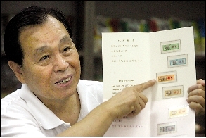 “这是咱北京最早的粮票,收藏界俗称‘开门票’,一套现在得卖1万块钱。”68岁的白少川说,我哪能把真的挂这儿?他指着这套长10.1厘米,宽5.3厘米,分为1市斤、4市斤、8市斤、10市斤4种面额的“面粉购买证”,小有得意:“北京能收集全的,超不过3个人!”